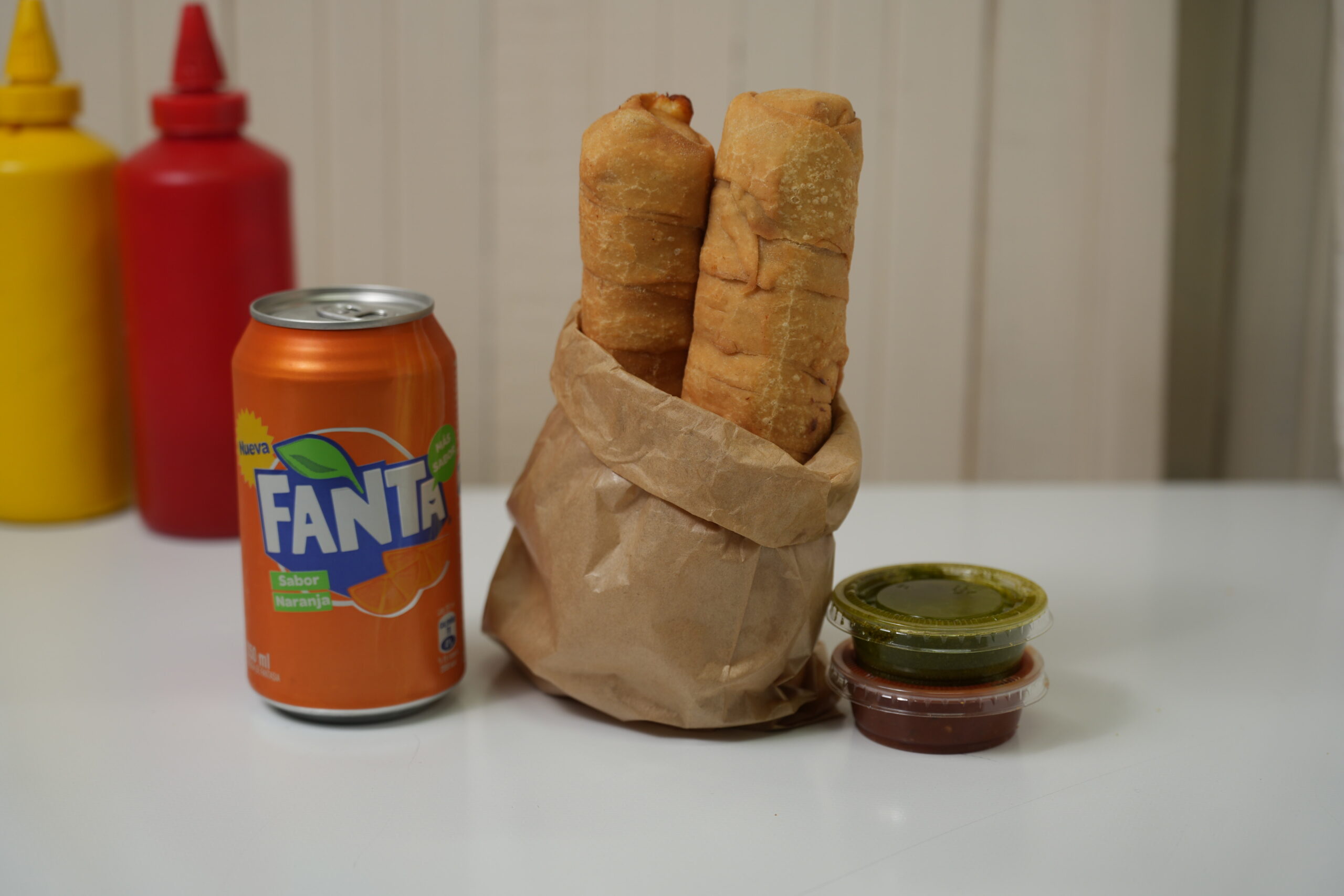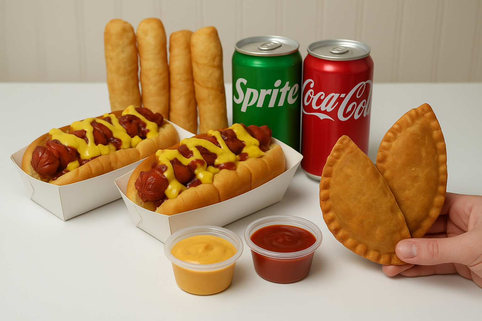 2 empanadas + 2 perripletos americanos + 4 coctelitos + 2 bebidas chicas + 2 salsas
